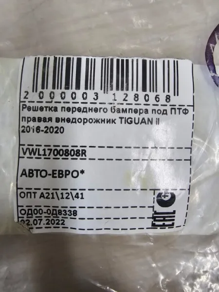 Накладка ПТФ Правая VW Tiguan 2